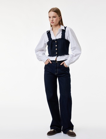 Dar Kesim Keten Karışımlı Düğmeli Kolsuz Crop Gömlek Sepete Ekle