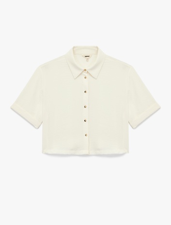 Crop Gömlek Kısa Kollu Düğmeli Modal Karışımlı Sepete Ekle