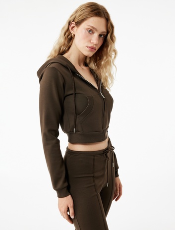 Crop Kapüşonlu Fermuarlı Hırka Uzun Kollu Slim Fit