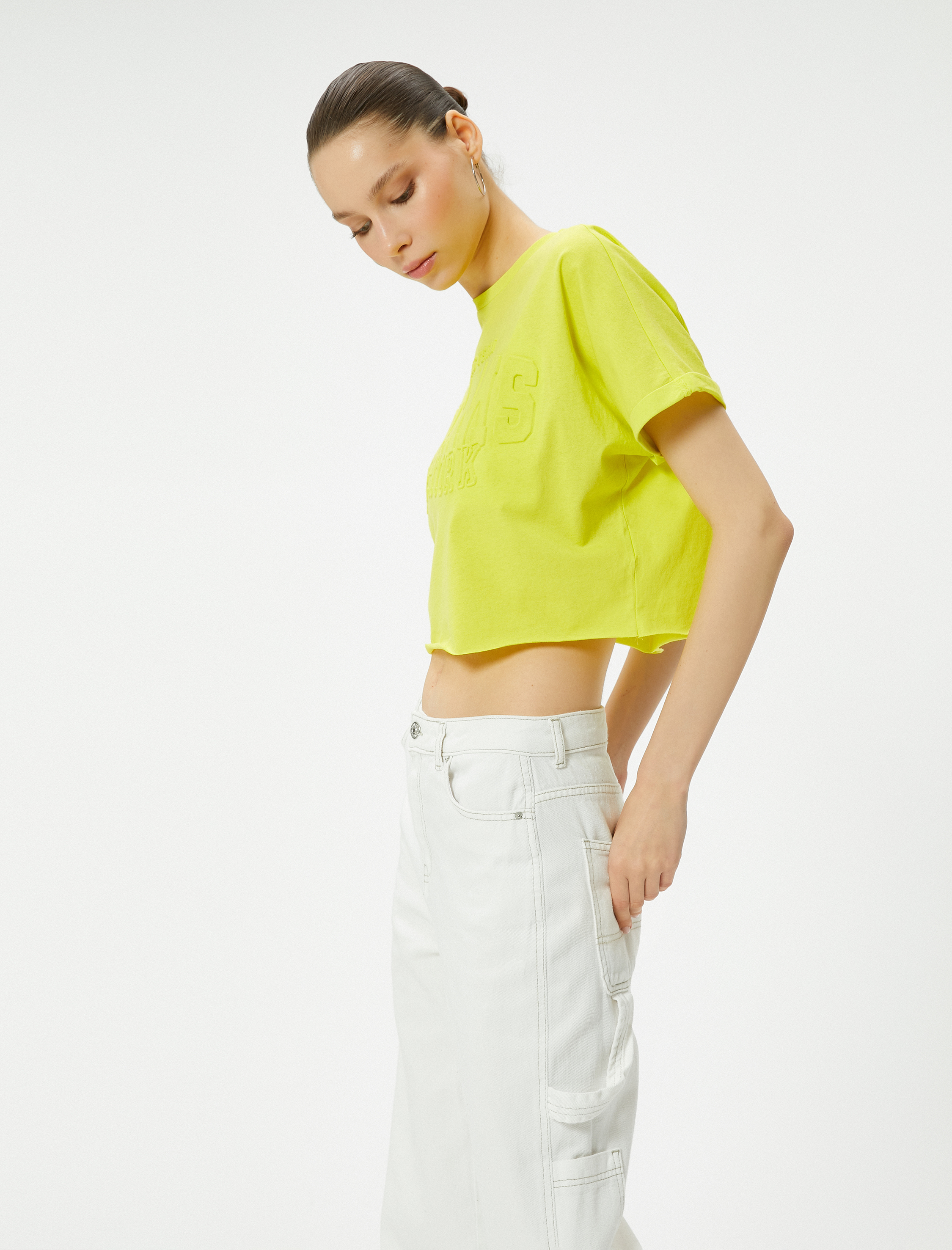 Crop Tişört Oversize Kısa Kollu Bisiklet Yaka