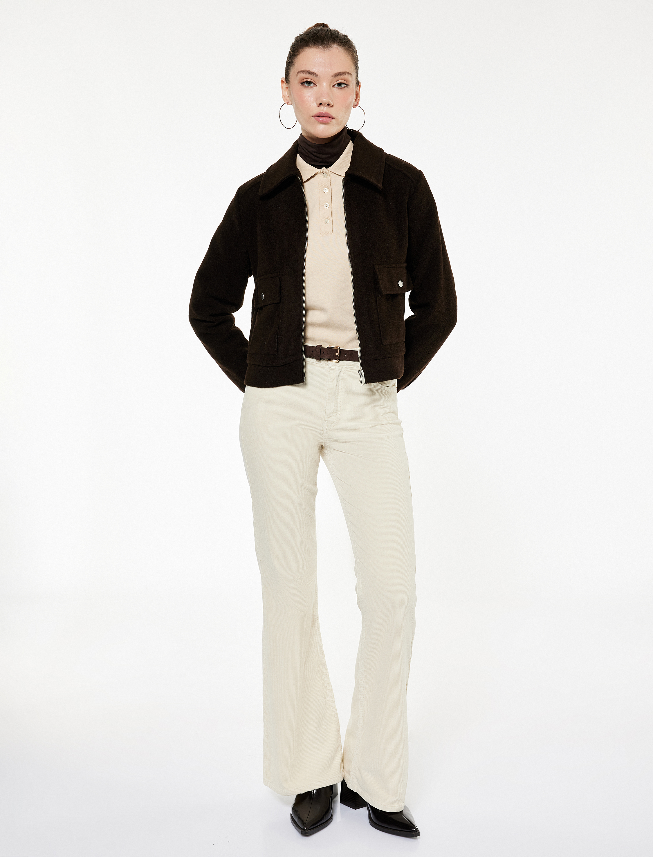 Dar Kesim Düğmeli Cepli İspanyol Paça Kadife Pantolon - Flare Jeans
