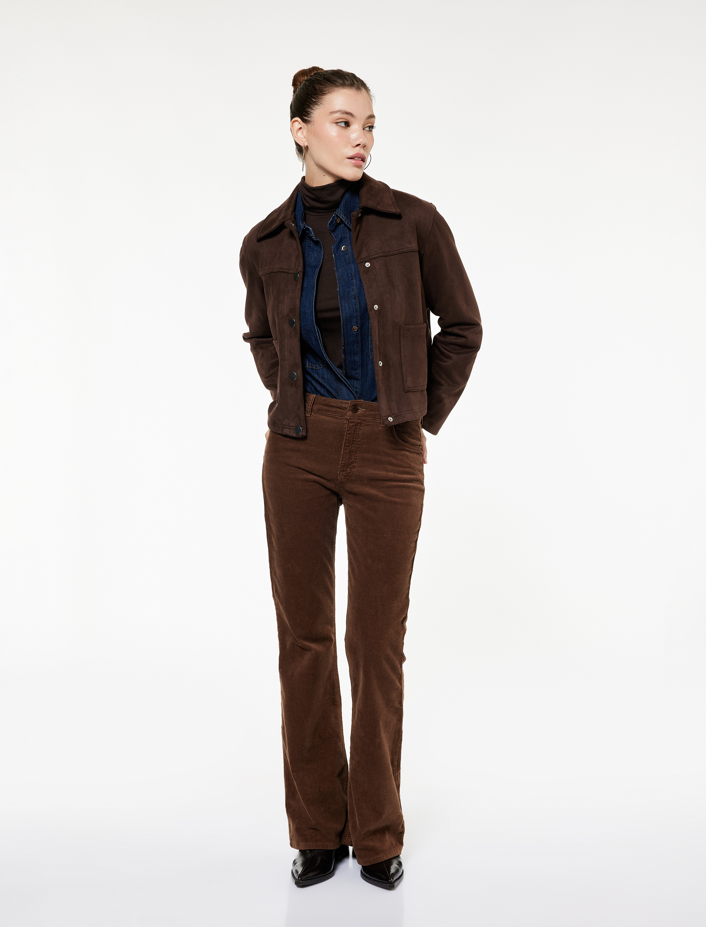 Dar Kesim Düğmeli Cepli İspanyol Paça Kadife Pantolon - Flare Jeans