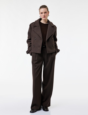 Koton X Sima Tarkan - Kısa Kaban Kaşe Uzun Kollu Cepli Kruvaze