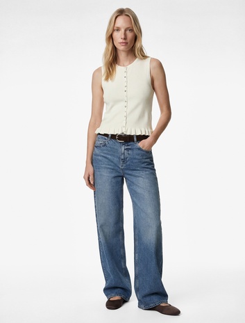 Fırfırlı Düğmeli Bisiklet Yaka Triko Yelek Sepete Ekle