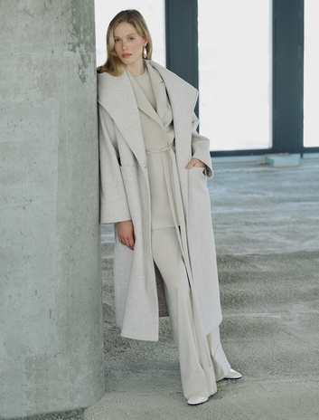 Ekstra Uzun Kaşe Kaban Geniş Şal Yaka Cepli Yandan Yırtmaç Detaylı