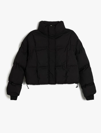 Kısa Şişme Mont Dik Yaka Fermuarlı Cepli Rahat Kalıp