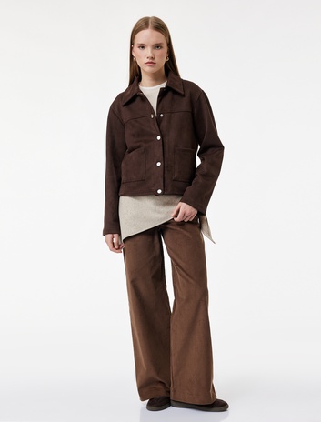 Aplike Cep Detaylı Geniş Paça Fitilli Kadife Pantolon Sepete Ekle