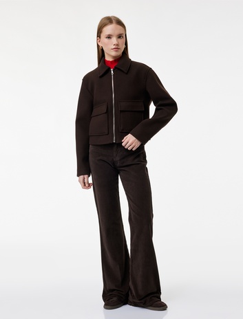 Dar Kesim Düğmeli Cepli İspanyol Paça Kadife Pantolon - Flare Jeans Sepete Ekle
