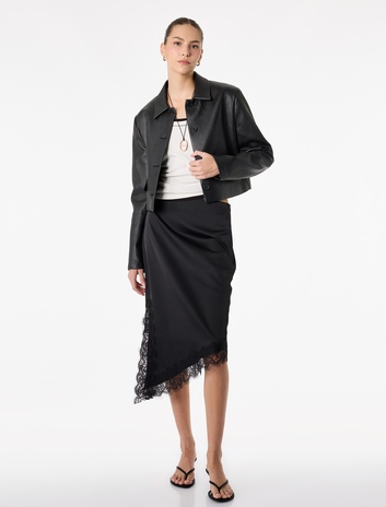 Asimetrik Kesim Normal Bel Dantel Detaylı Saten Etek