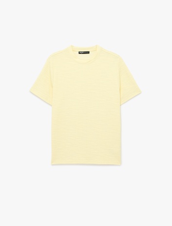 { "id": "8684848557777", "name": "Regular Fit Kısa Kollu Dokulu Tok Kumaş Bisiklet Yaka Tişört", "taxonomy":["MENSWEAR","SMART","MEN","JERSEY","TSHIRT SS"], "currency": "TRY", "unit_price": 999.99 , "unit_sale_price": 999.99 , "url": "https://www.koton.com/regular-fit-kisa-kollu-dokulu-tok-kumas-bisiklet-yaka-tisort-sari-4147685/", "stock": 23, "color": "SARI", "size": "S", "product_image_url": "https://ktnimg2.mncdn.com/products/2026/03/09/3212814/123ffa7f-1847-4f20-9f8b-8935b5a11468_size870x1142.jpg" }