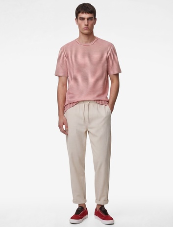 Regular Fit Kısa Kollu Pamuklu Bisiklet Yaka Çizgili Tişört Sepete Ekle