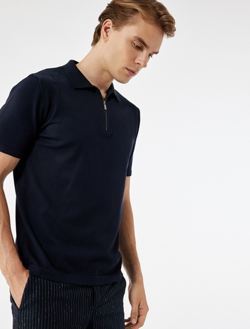 Viskon Regular Fit Polo Yaka Yarım Fermuarlı Kısa Kollu Triko Tişört