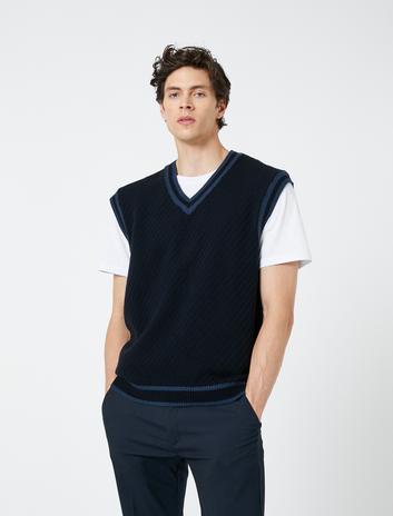 V Yaka Örgü Süveter Kolsuz Dokulu