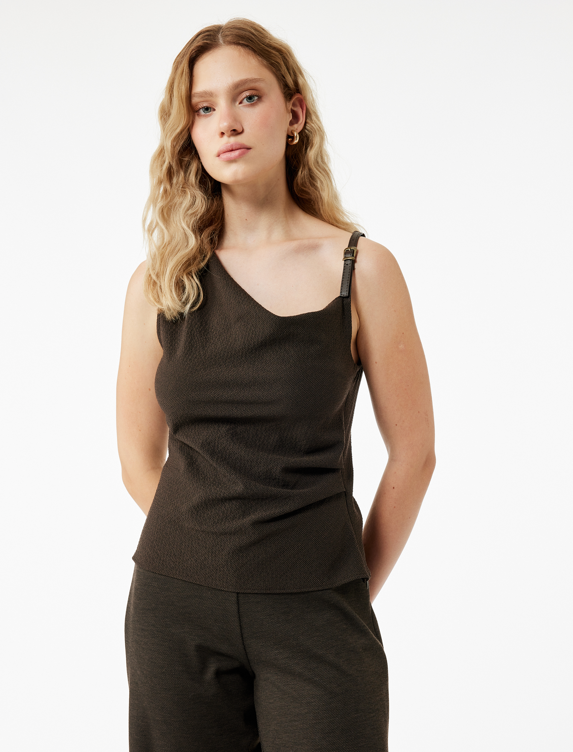 Drapeli Degaje Yaka Kemer Detaylı Viskon Karışımlı Kolsuz Bluz