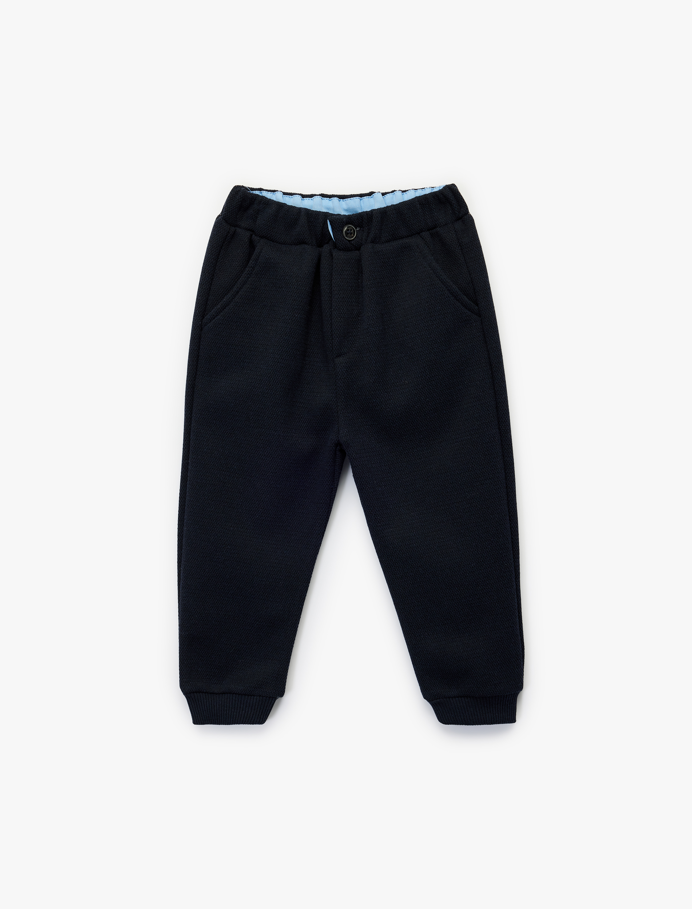 Erkek Bebek Düğme Detaylı Cepli Beli Lastikli Basic Pantolon Görünümlü Eşofman Altı