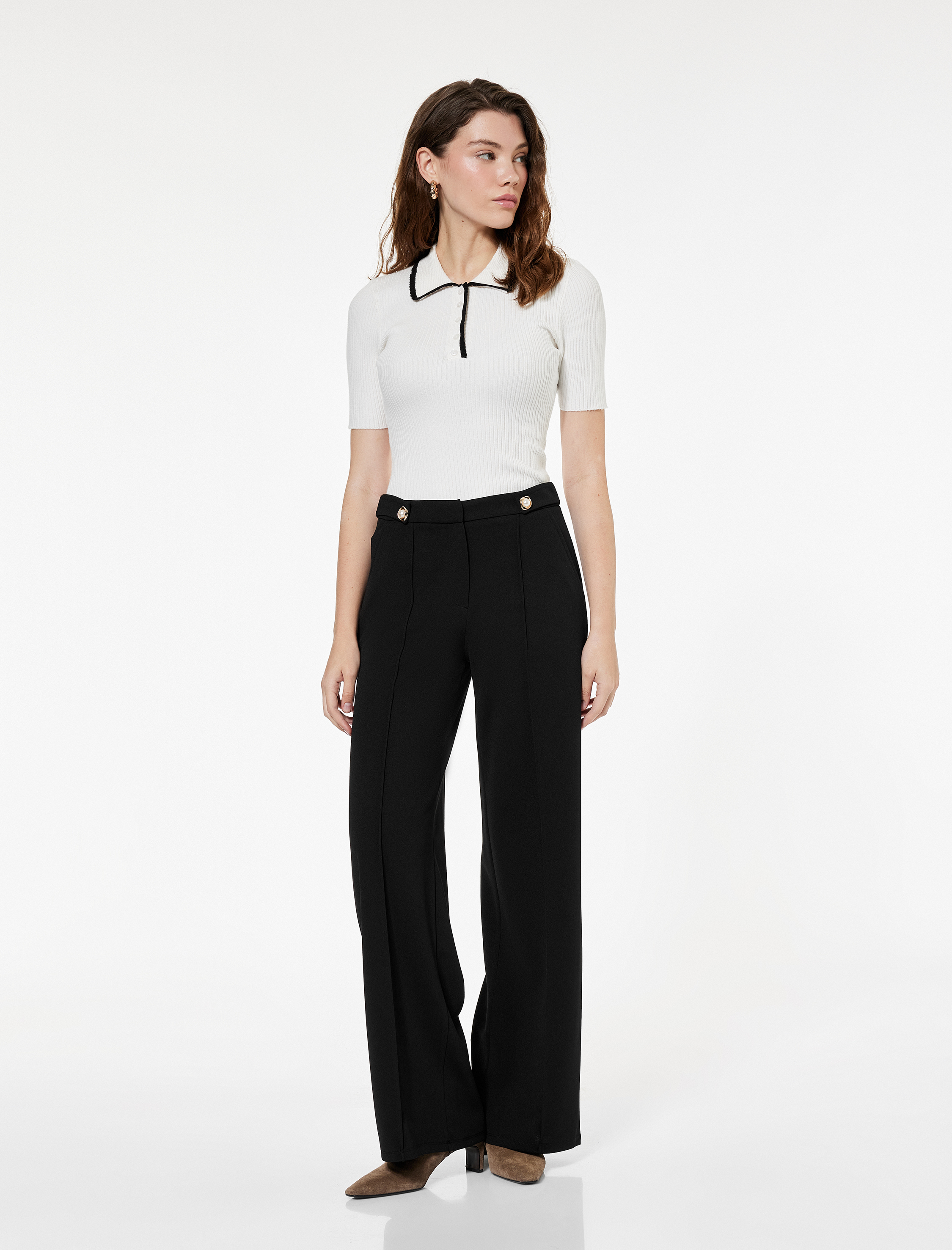 Düğme Detaylı Cepli Düz Bol Paça Kumaş Pantolon