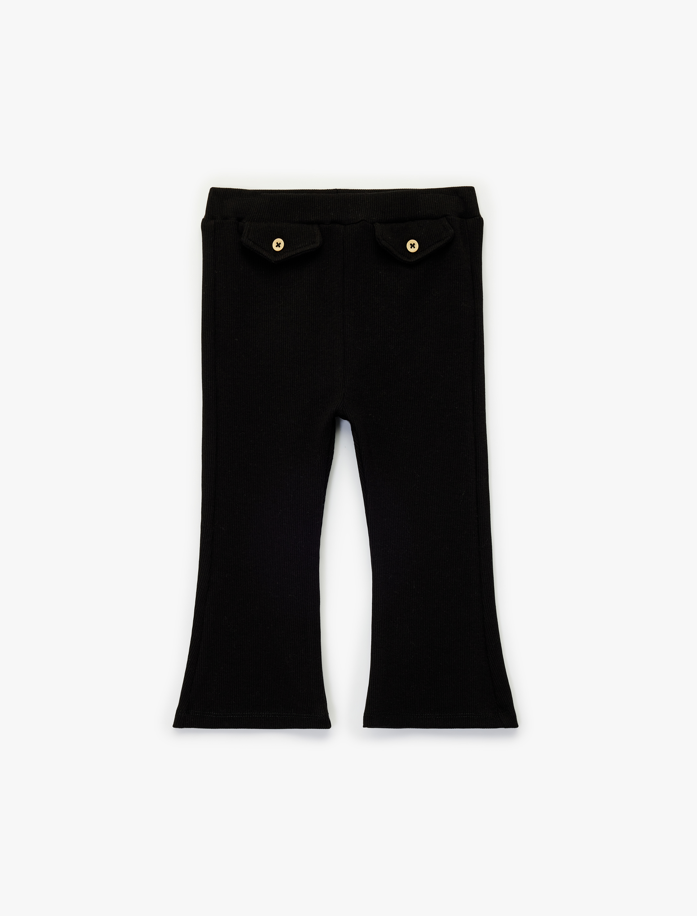 Kız Bebek Düğme Detaylı Pamuklu İspanyol Paça Tayt