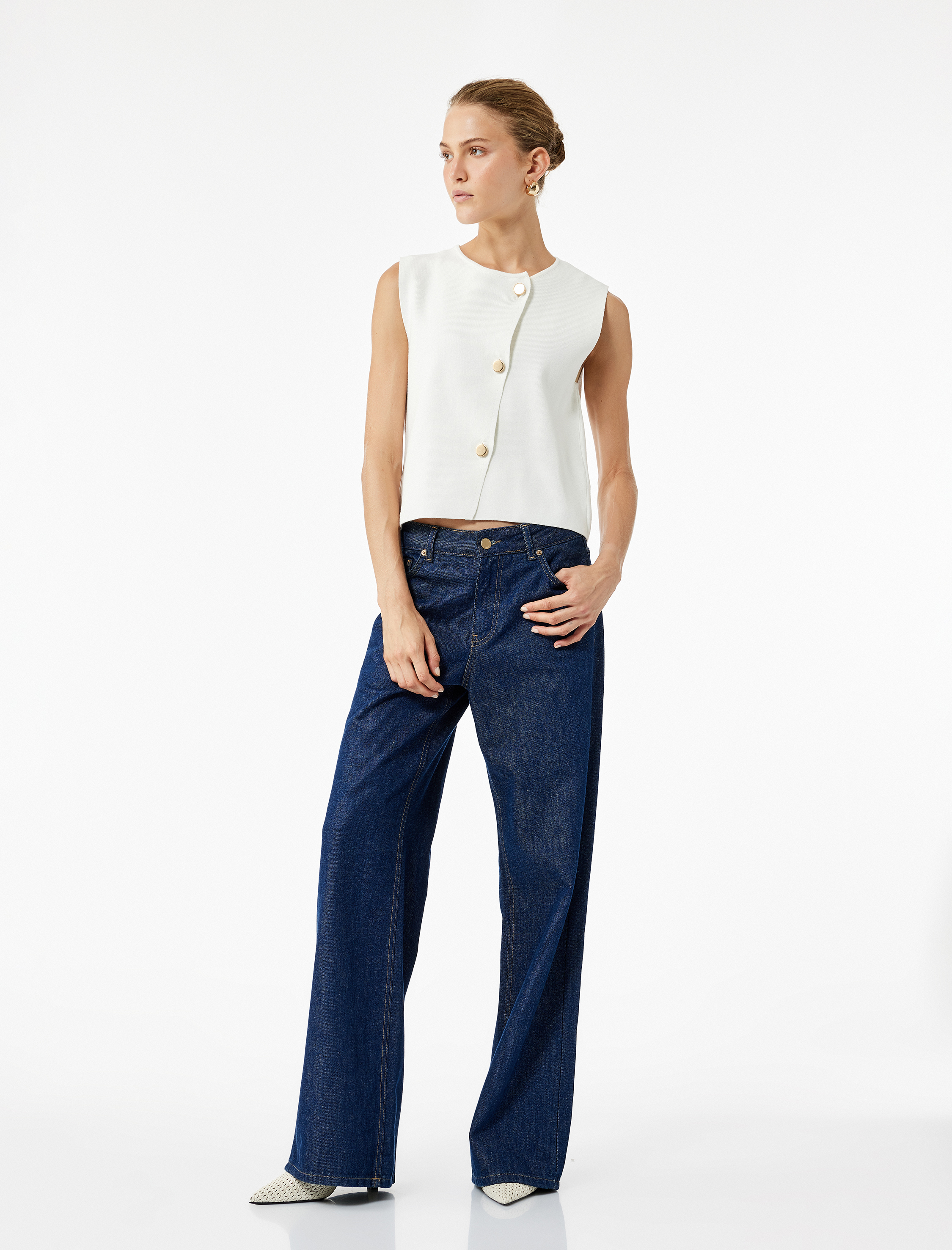 Düğmeli Bisiklet Yaka Kolsuz Triko Yelek