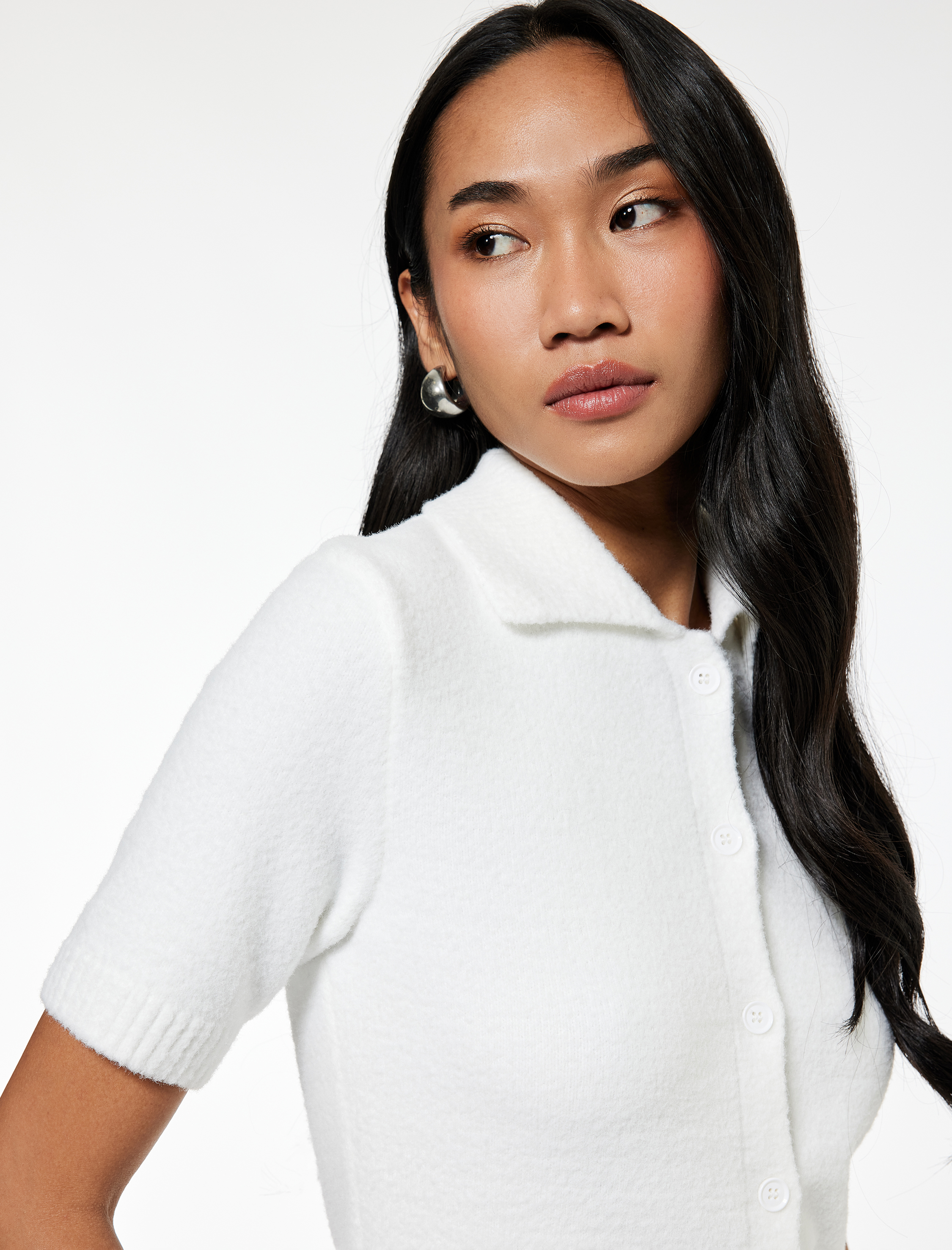 Düğmeli Kısa Kollu Polo Yaka Triko Peluş Hırka