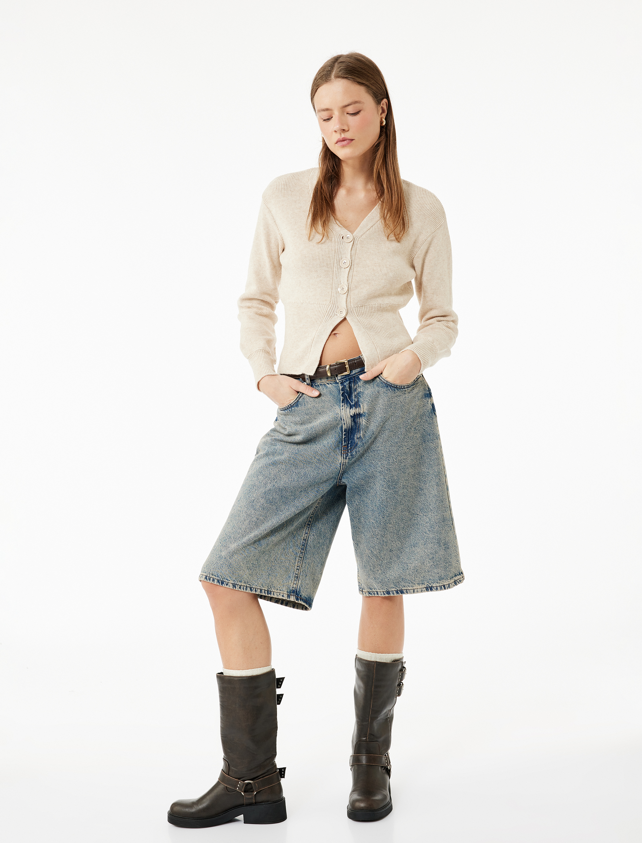 Düğmeli V Yaka Uzun Kollu Triko Hırka