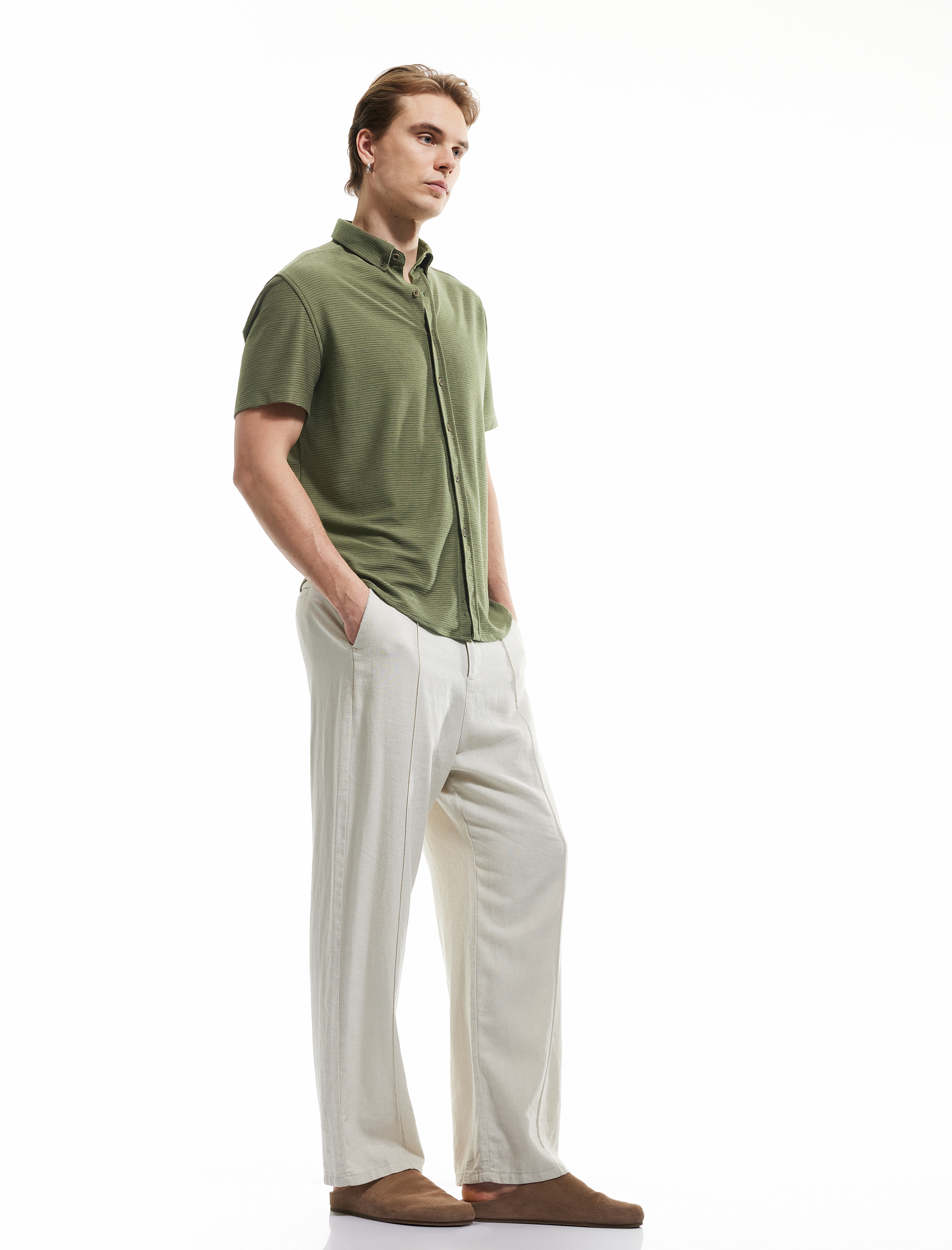 Düğmeli Yaka Dokulu Viskon Karışımlı Regular Fit Klasik Kısa Kollu Gömlek