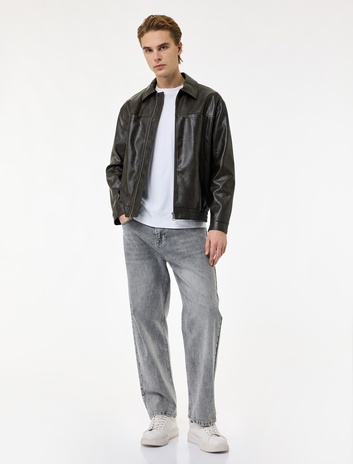 Koton X Sibil Çetinkaya - Kısa Bomber Ceket Oversize Kaşe Uzun Kollu Fermuarlı