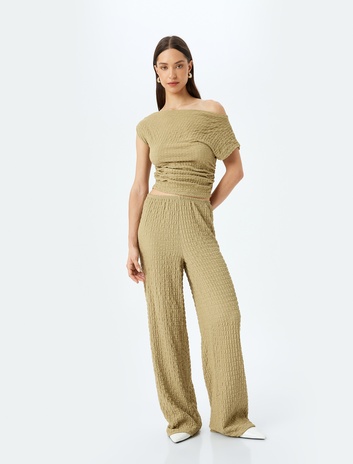 Rahat Kalıp Dokulu Bol Paça Pantolon