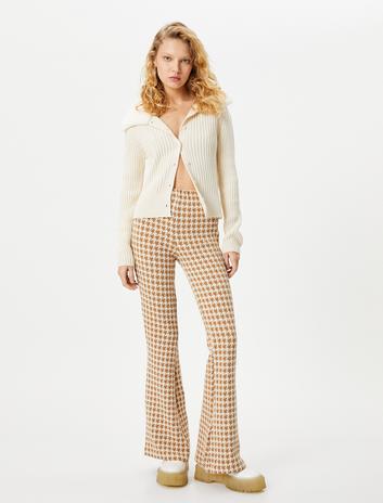 İspanyol Paça Tayt Pantolon Yüksek Bel Desenli Sepete Ekle