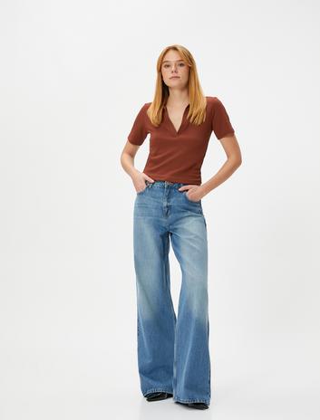 Polo Yaka Tişört Kısa Kollu Dokulu
