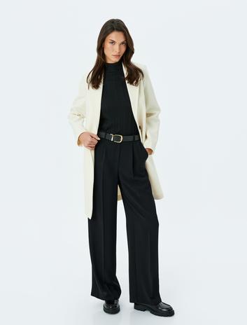 Cep Detaylı Uzun Kollu Düğmeli Dar Kalıp Kruvaze Yaka Kaşe Kaban Sepete Ekle