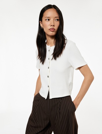 Regular Fit Kısa Kollu Bisiklet Yaka Düğmeli Hırka