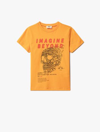 Erkek Çocuk Tişört Kuru Kafa Baskılı Kısa Kollu Bisiklet Yaka Pamuklu
