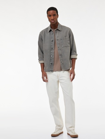 Rahat Kalıp Uzun Kollu Cep Detaylı Düğmeli Klasik Yaka Pamuklu Jean Ceket