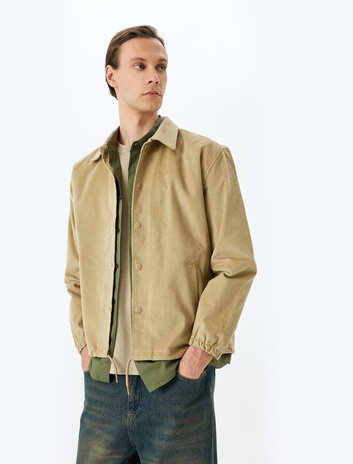 Düğmeli Uzun Kollu Gömlek Yaka Fitilli Kadife Ceket