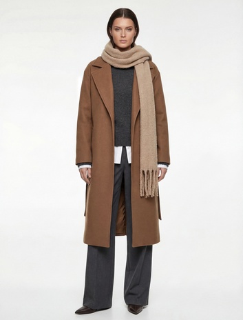 Uzun Kollu Cepli Kemerli Uzun Kaşe Kaban Sepete Ekle