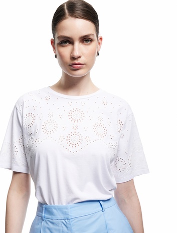 Pamuklu Kısa Kollu Bisiklet Yaka Fistolu Brodeli Tişört