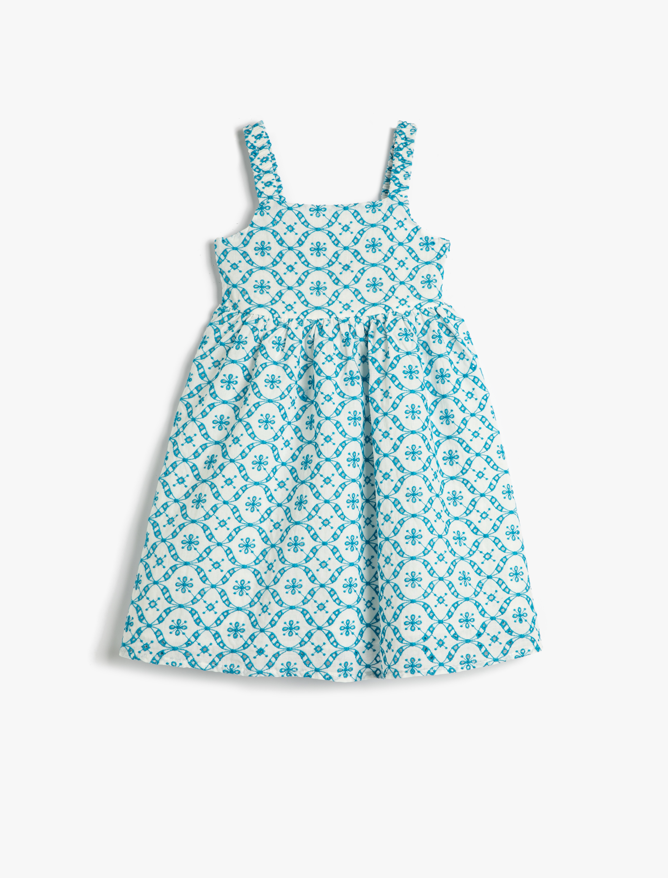 Kız Çocuk Elbise Askılı Fisto İşlemeli Pamuklu Astarlı