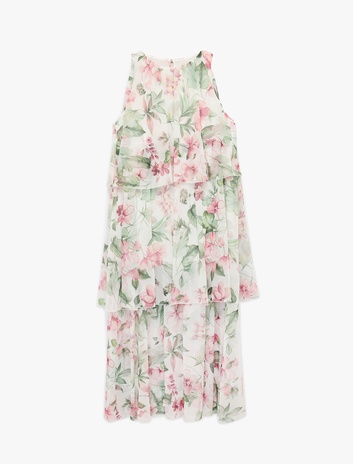 Katlı Kolsuz Halter Yaka Çiçekli Şifon Elbise Sepete Ekle
