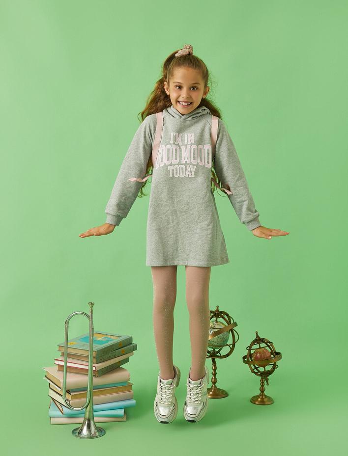 Pamuklu Kapüşonlu Elbise Baskılı Sepete Ekle