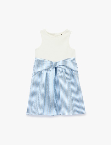 Pamuklu Kolsuz Bisiklet Yaka Fiyonklu Elbise Sepete Ekle