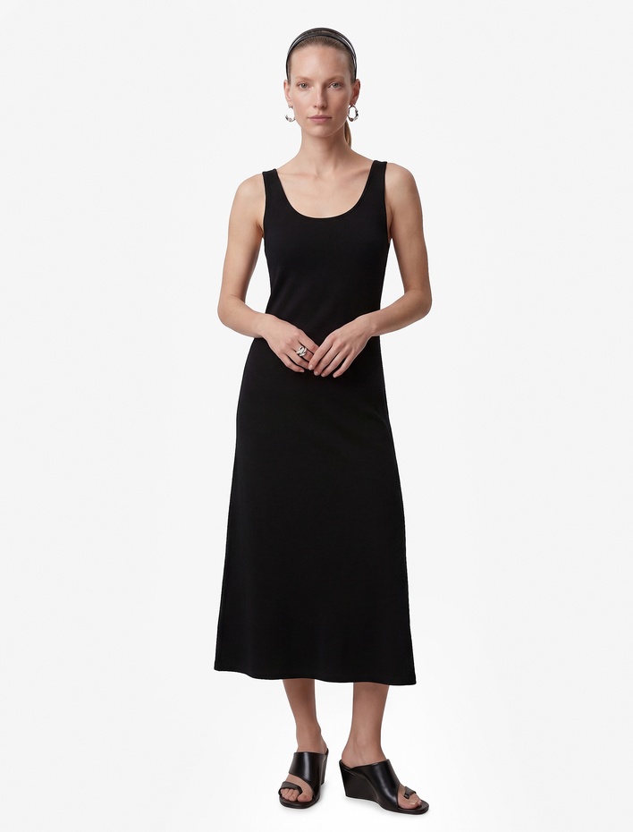 Ön Yırtmaç Detaylı Slim Fit Yuvarlak Yaka Kolsuz Midi Elbise