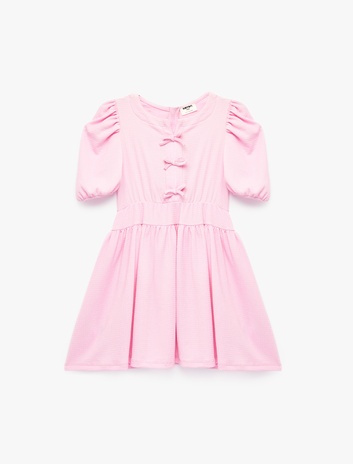 Kız Çocuk Yarım Kollu Bisiklet Yaka Fiyonklu Elbise