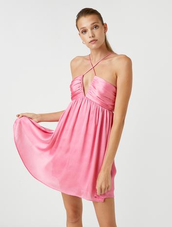 Mini Elbise Pencere Detaylı Halter Yaka Sepete Ekle