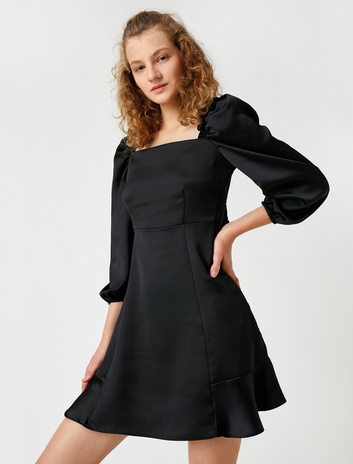 Balon Kollu U Yaka Mini Elbise Sepete Ekle