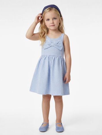 Kız Bebek Fiyonk Detaylı Bisiklet Yaka Çizgili Askılı Elbise