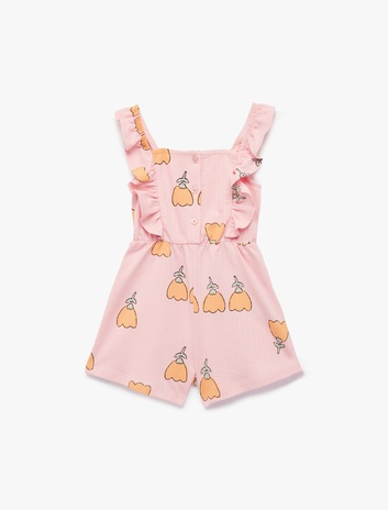 Fırfır Detaylı Bisiklet Yaka Askılı Çiçek Baskılı Pamuklu Tulum Sepete Ekle