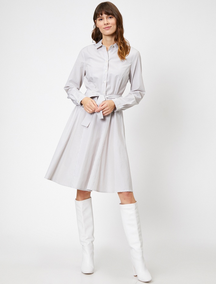 Çizgili Kemer Detaylı Elbise Sepete Ekle