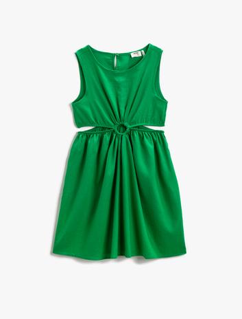 Midi Elbise Pencere Detaylı Kolsuz Keten Karışımlı Sepete Ekle