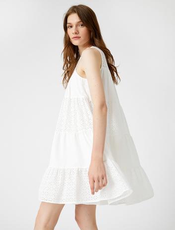 Fırfırlı Poplin Mini Elbise Pamuklu