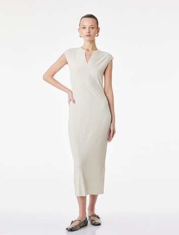 Koton X Şahika Ercümen - Kolsuz Bisiklet Yaka Taşlı Pencere Detaylı Kalem Uzun Elbise Sepete Ekle